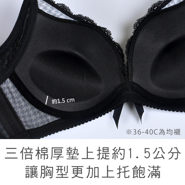 B罩,32-34C罩:下厚約1.5公分 36-40C罩:均襯約0.5公分