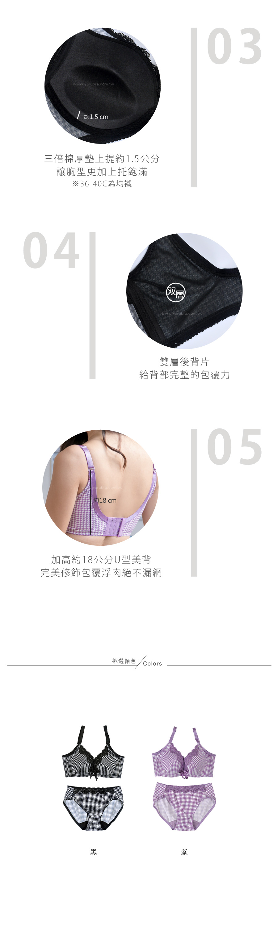 | BRA150 | 經典千鳥格內衣 | 黑,紫 |