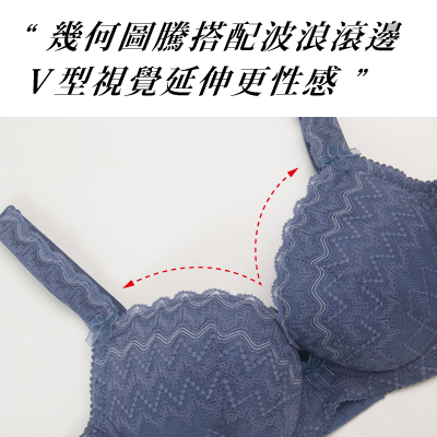 優雅的法式 簡約風格,由雙肩延伸至胸前的波浪蕾絲設計,就像穿戴一條美麗的項鍊,讓胸前的深V視覺更加性感誘人,不讓花朵設計的蕾絲專美於前,多重幾何圖騰的布料,透露出中性時尚魅力,讓女孩們有更多不一樣的選擇,內提托式剪裁杯型,加強胸線上提與集中,背片採用雙層塑身布料設計與加高美背設計,修飾背部浮肉,展現完美顯瘦身型,側八字膠條讓側片穩定性與服貼度更好,喜歡這樣簡約風格的集中型內衣的水水,這是你最好的選擇哦~