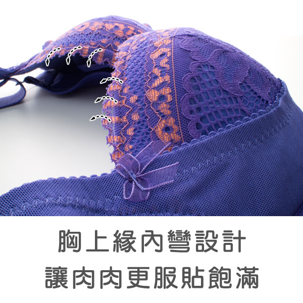 最受期待的美胸容器第二代來囉~設計師在蕾絲與配色選用上更加用心,讓妳有為之一亮的特別感受!如同緞帶般圖騰滾邊,令人驚艷的寶石藍,雍容貴氣感十足,搭配黃金滾片配色,絕對帶給你滿滿的財氣與人氣!外型美麗穿起來更是美,側邊美胸提托帶設計,打造集中托高胸型,胸上緣內彎設計,讓肉肉更加服貼飽滿,側邊採用雙層280D六角塑布,加高撫平側邊與背部肉肉,展現完美身型曲線,穿上衣服更加美麗,這件內衣絕對是妳今年不可錯過的一款哦~