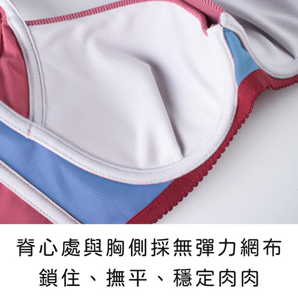 ★脊心處與胸側採無彈力網布,鎖住、撫平、穩定肉肉