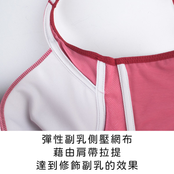 ★彈性副乳側壓網布,藉由肩帶拉提,達到修飾副乳的效果