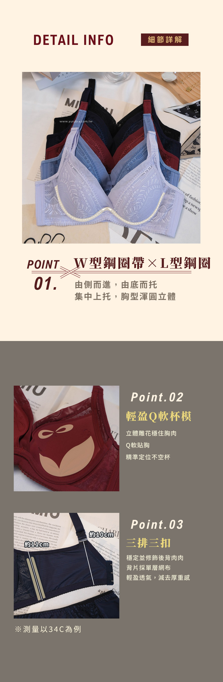 ★L型軟鋼圈×W型無鋼圈帶,輕盈集中舒適