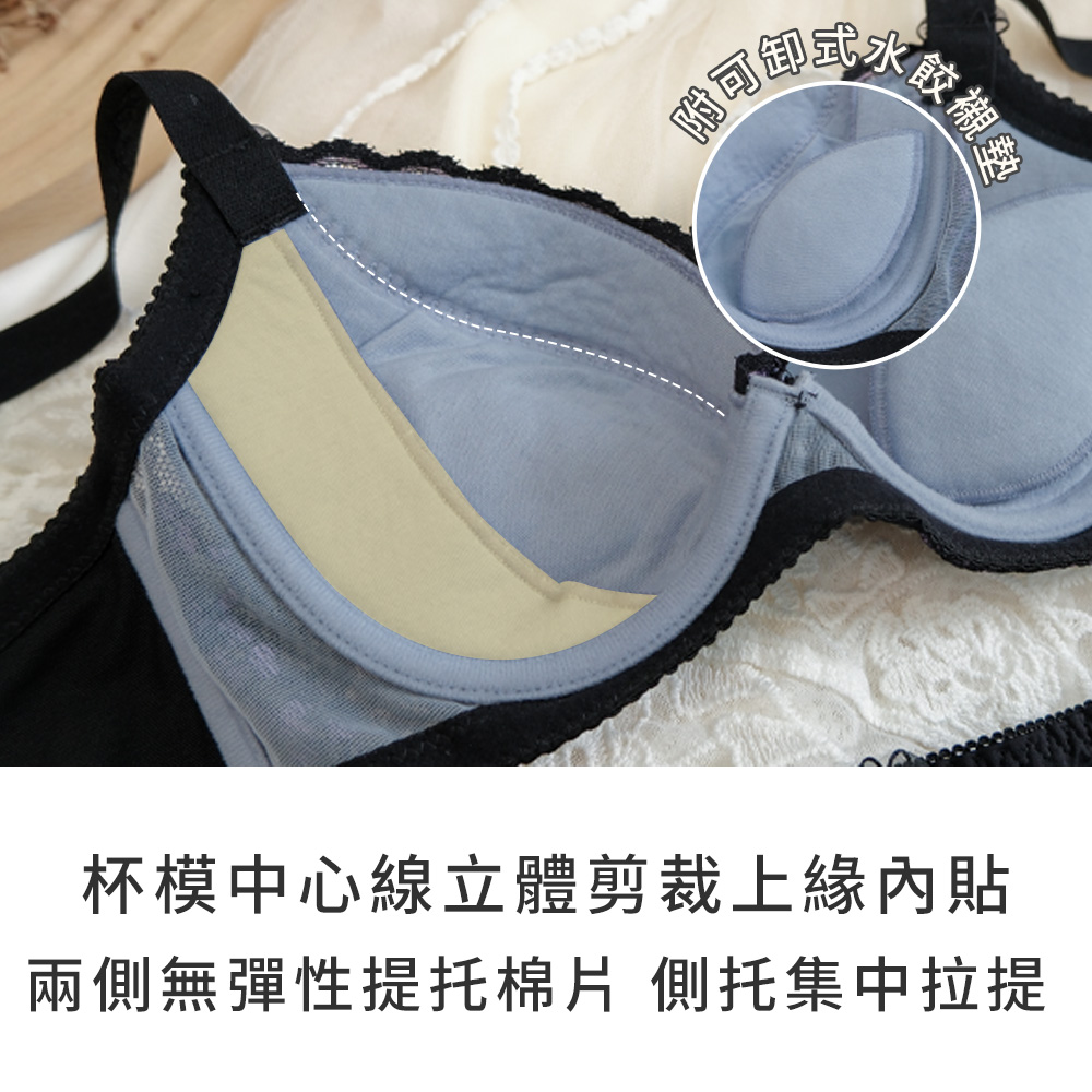 ★杯模中心線托提剪裁,上緣內貼,打造集中立體澎澎胸