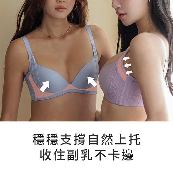 ★服貼兩側的密緻蕾絲,收攏曲線,讓胸型視覺更立體