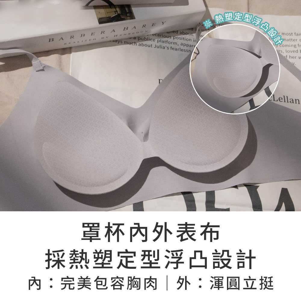 ★罩杯內外表布採熱塑定型浮凸設計