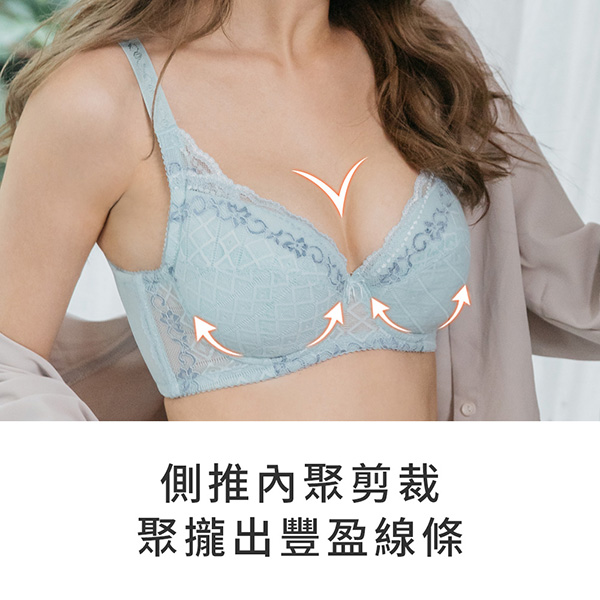 ★側推上托剪裁+內聚提托力:讓再軟的胸都能安穩包覆,上托不空杯!