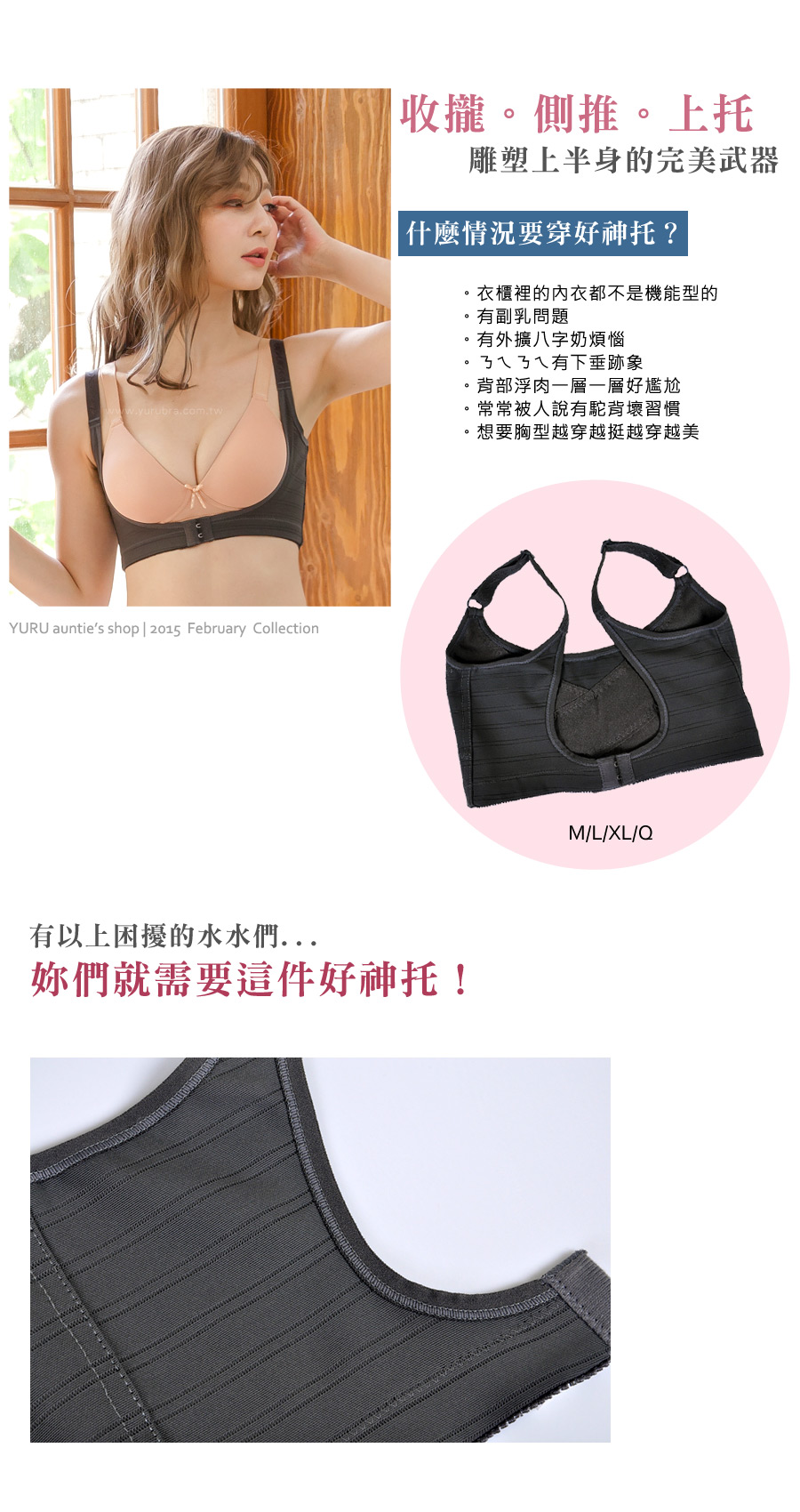 ★玉如阿姨強力介紹,雕塑上半身的祕密武器!就是好神托~ ★它擁有能夠讓上半身曲線越來越美麗的功能所以阿姨叫他”好神”托^^ ★這款胸托採用560丹尼塑網布,束力很好,標準的塑身衣材質 ★前扣式設計,可以防止胸部外擴下垂以外,還能夠將胸距拉近喔 ★完全包覆腋下的設計,讓副乳完全都往前推進,後腋下也包的很完美 ★後背採用X型交叉車縫,不只加強撫平效果以外,還能夠防駝 ★穿著好神托真的可以讓我們的胸型越穿越美麗^^ ★台灣製造,品質保證