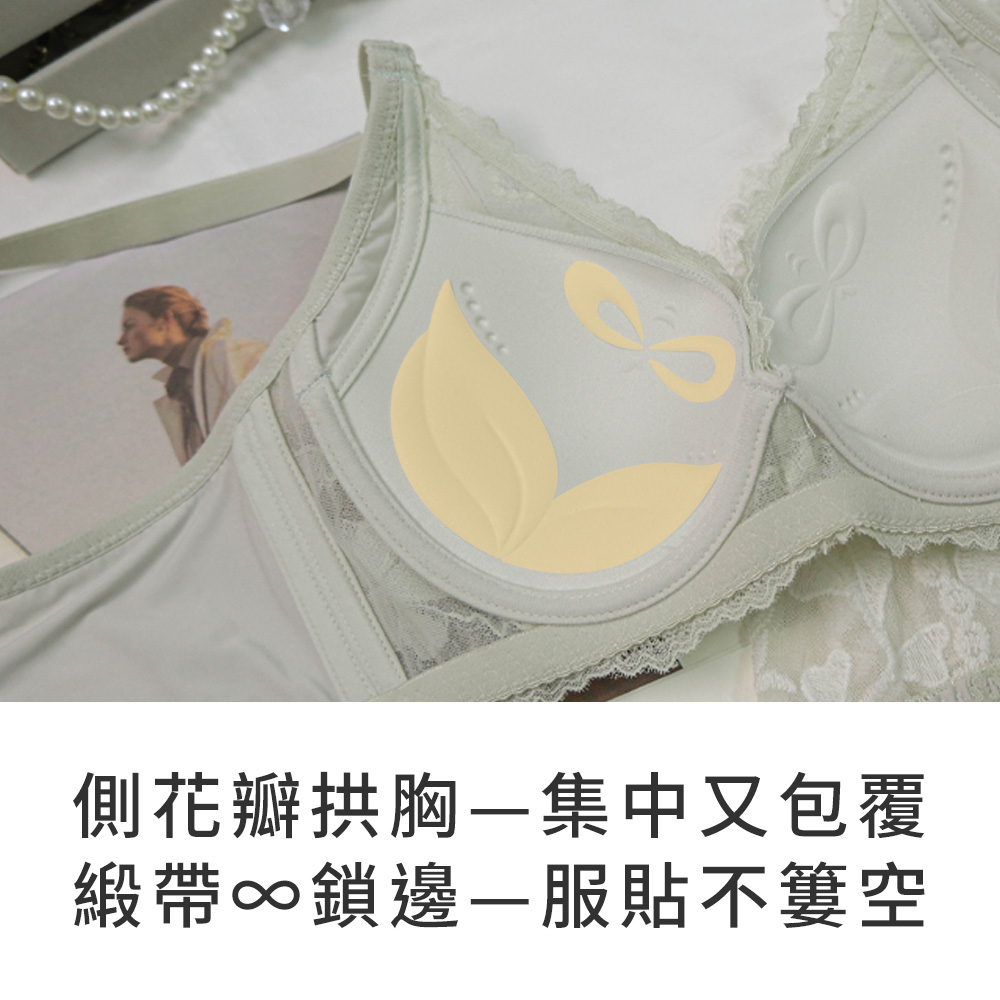 ★挺立杯型×雲Q綿,細緻服貼包覆 ★杯模上緞帶×下花瓣浮凸設計,減少簍空更飽滿 ★J型軟鋼圈,脊心舒適不易壓迫 ★雲Q綿杯模,溫柔托胸,輕薄不厚重 ★副乳側壓片,向上延伸更修飾 ★雙層超細U型背片,撫平肉肉兼具舒適感 ★腋下雙併膠條,穩定側邊不走位 ★U型美背+三排三扣設計,穩定並修飾後背肉肉 ★台灣製造,品質保證