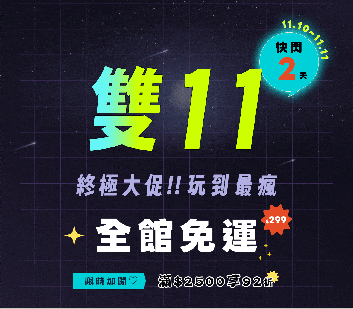 【終極大促】雙11✡玩到最瘋!!新品5折起✡【N0001】