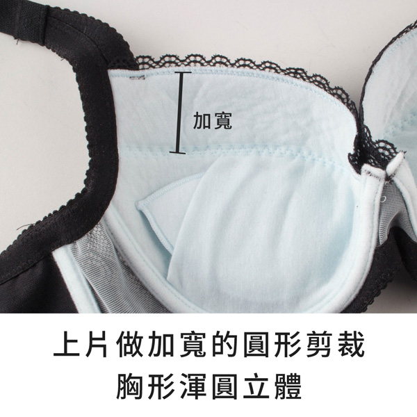 ★罩杯上片做加寬的圓形剪裁,胸形渾圓立體