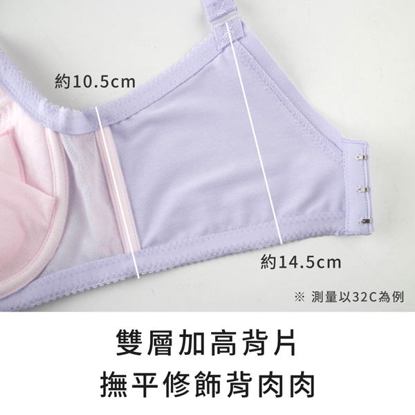 ★雙加寬緊帶接合肩耳,做三角拉提並包覆副乳