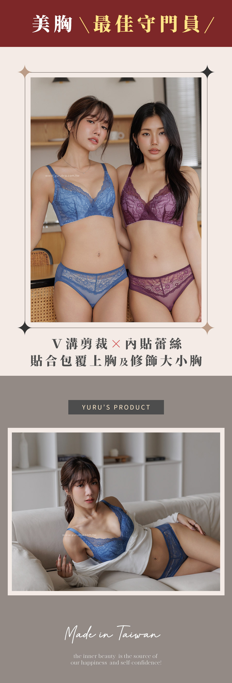 ★V溝剪裁×內貼蕾絲版型,貼合包覆上胸及修飾大小胸