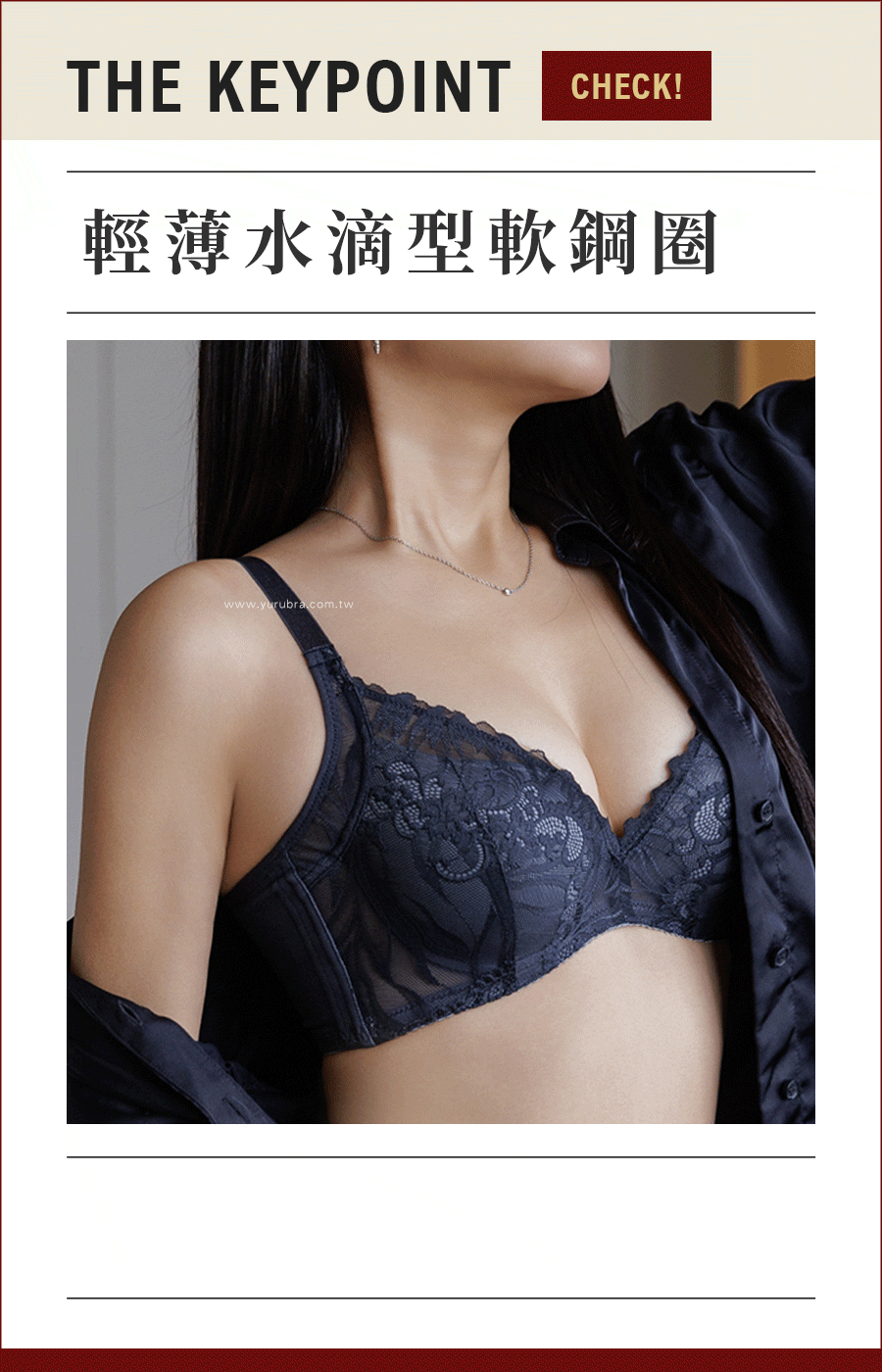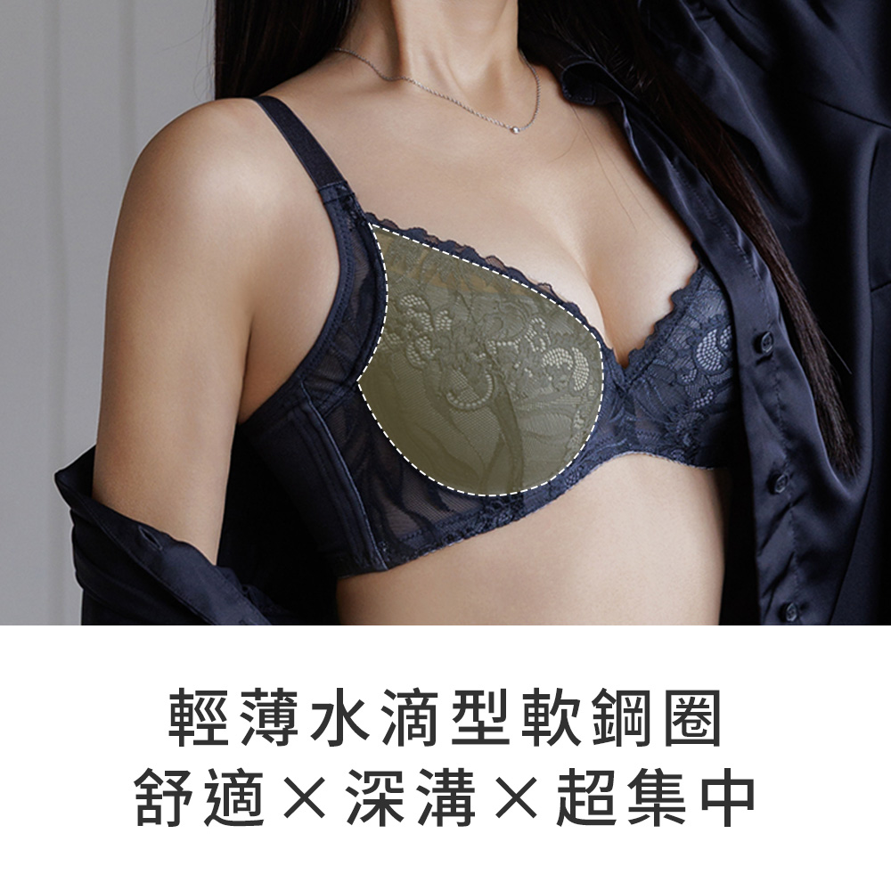 ★水滴型剪裁,超顯深溝的胸前V字蕾絲