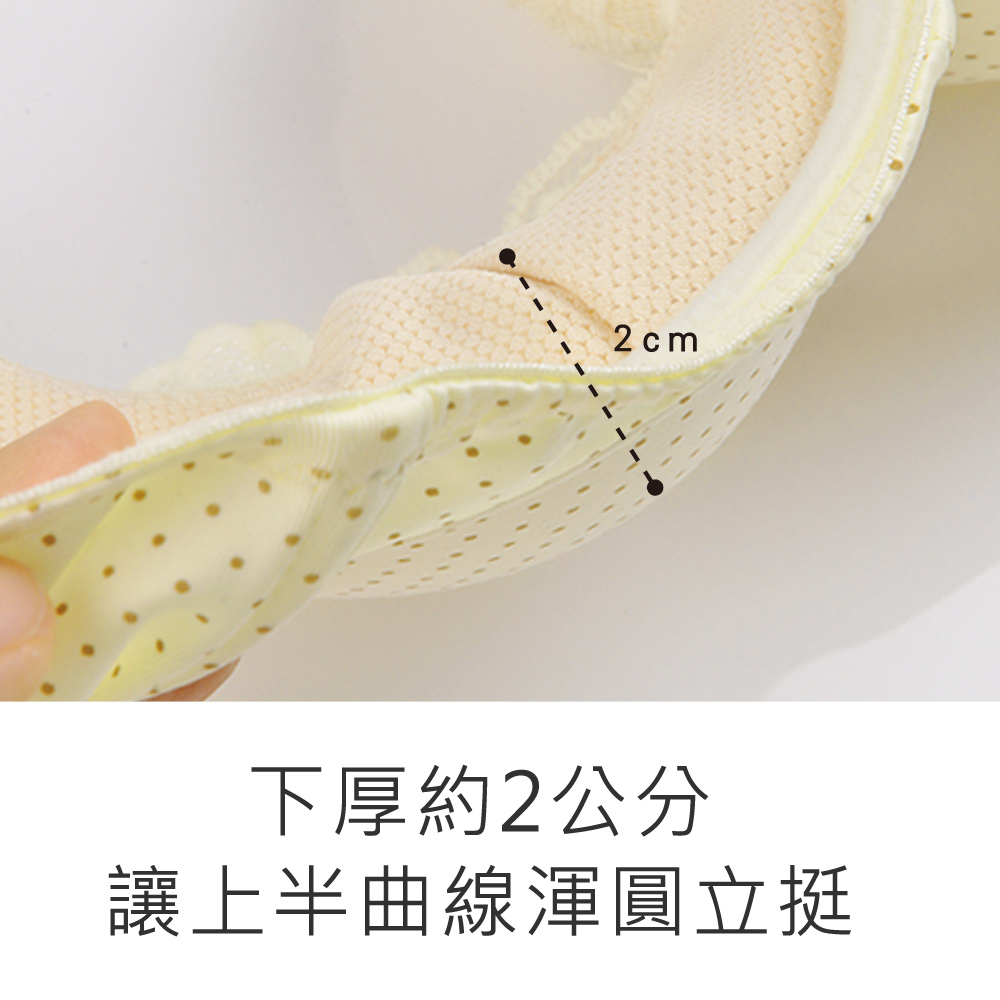 ★兩片式剪裁,下片加強托高,上片內彎修飾上胸,穿起來服貼又自然。