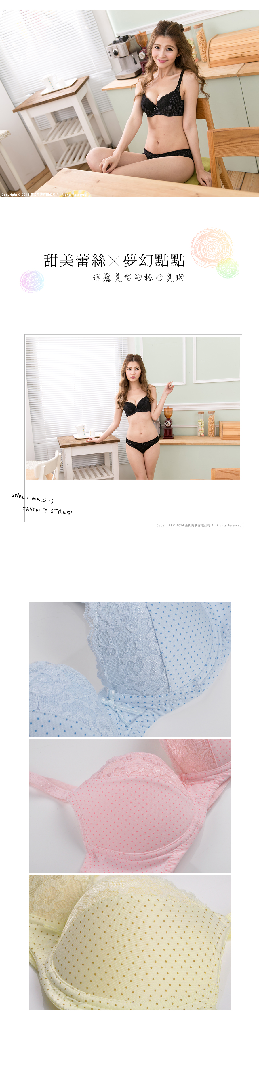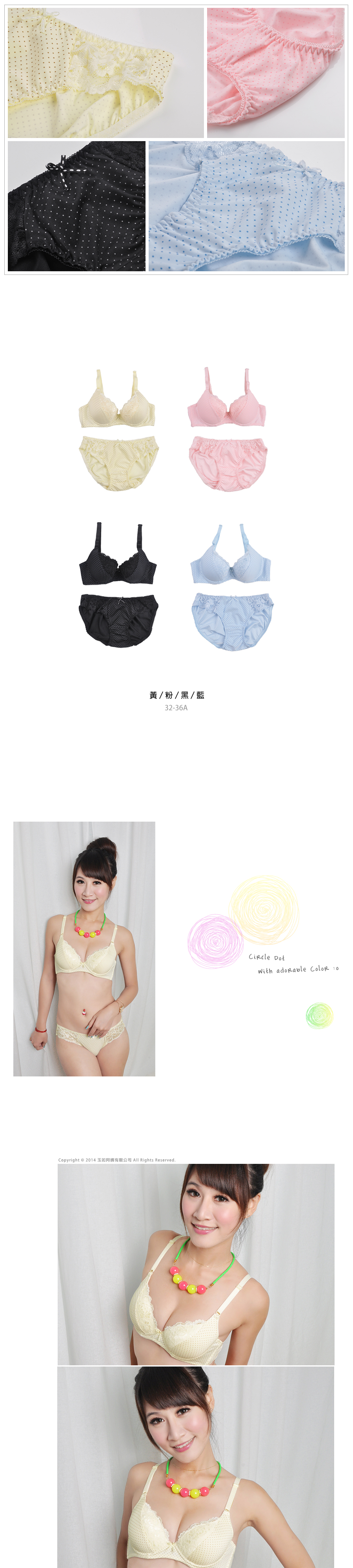 | BRA261 | 俏麗波點內衣 | 藍,黑,粉,黃 |