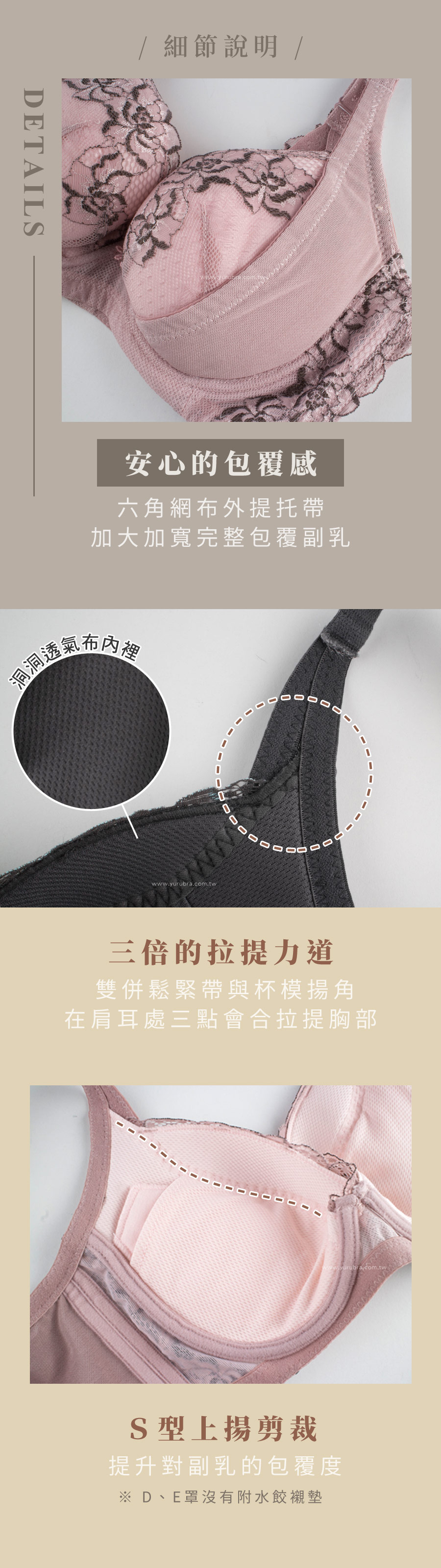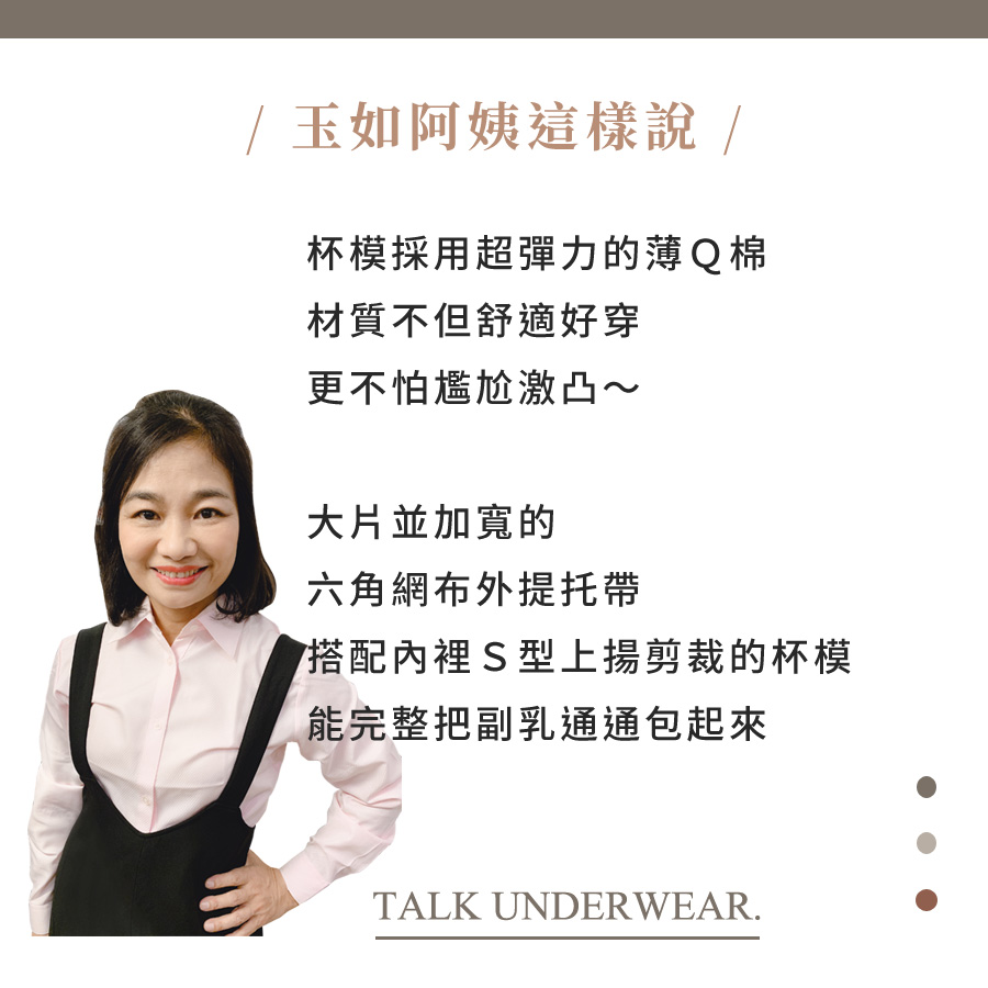 ★超彈力Q軟杯模+加大加寬外提托帶+S型上揚剪裁,給副乳最完整的包覆