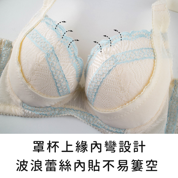 ★罩杯上緣內彎搭配波浪蕾絲鎖邊,雙重內貼上胸不易簍空