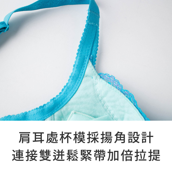★肩耳處杯模採揚角設計,連接雙迸鬆緊帶加倍拉提