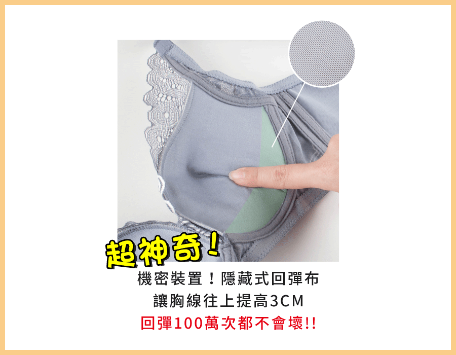 杯模內有隱藏式的回彈布料  讓胸部視覺上秘密的升級1-2個cup喲