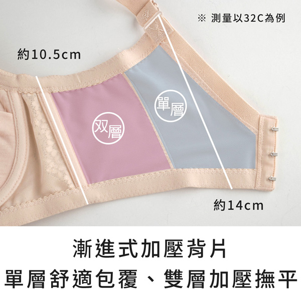 ★漸進式加壓背片,兼顧舒適透氣與加壓撫平