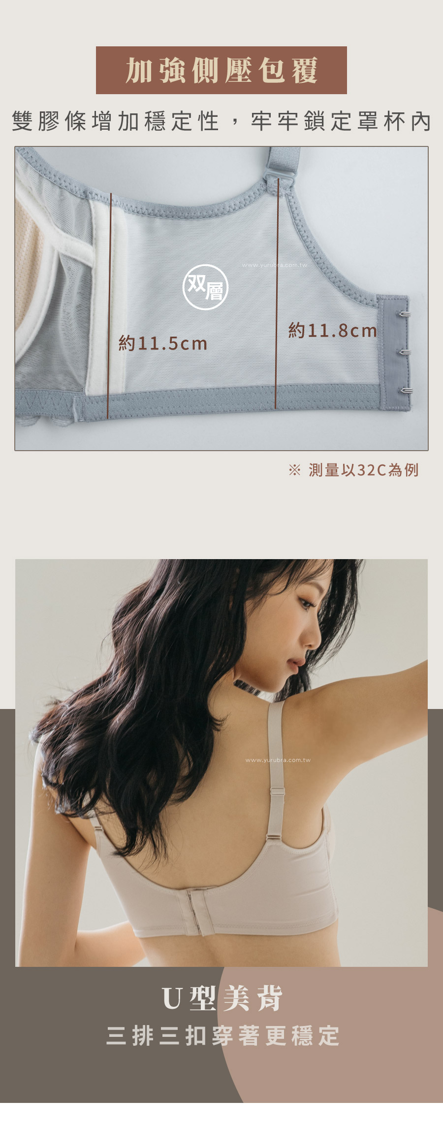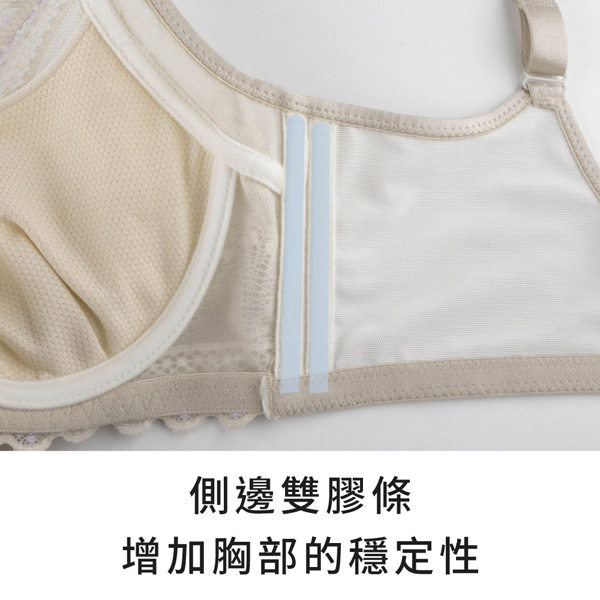 ★側邊雙膠條,增加胸部的穩定性,牢牢鎖定至罩杯內