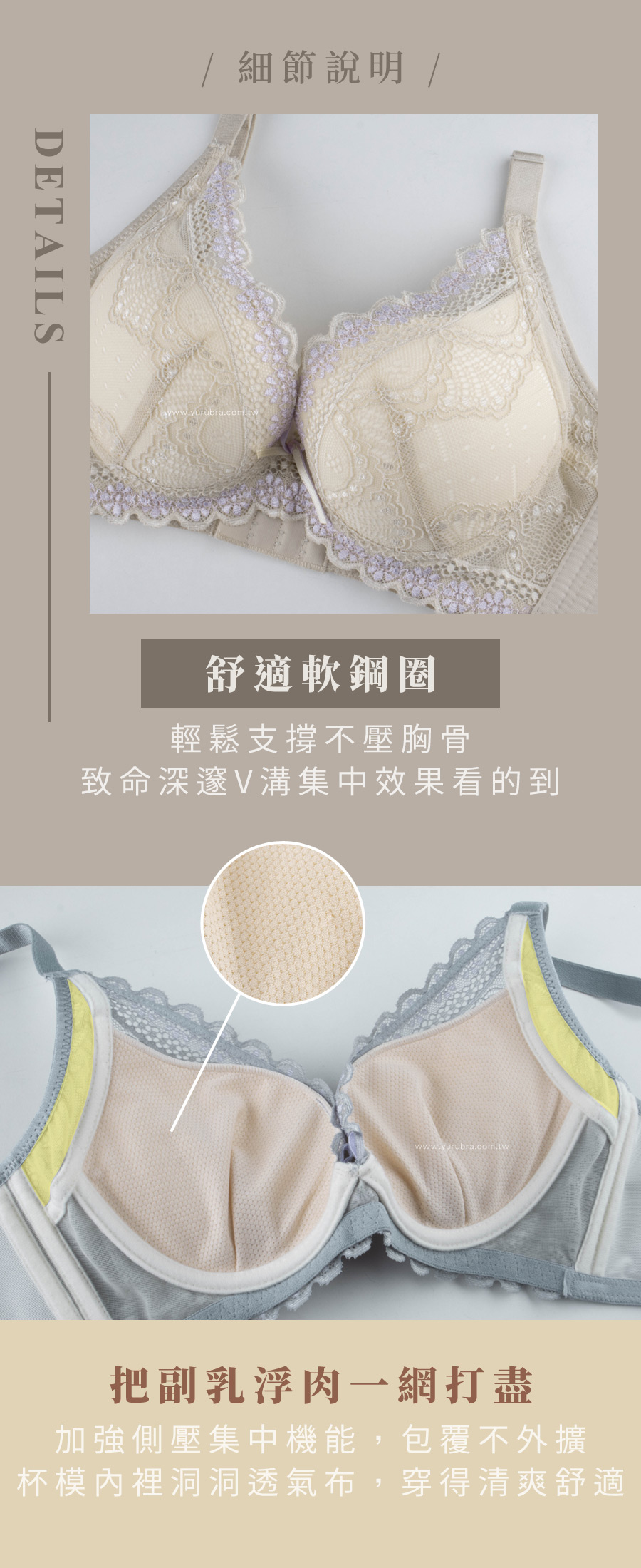 | BRA687 | 晨光微醺內衣 | 灰綠,米黃 |